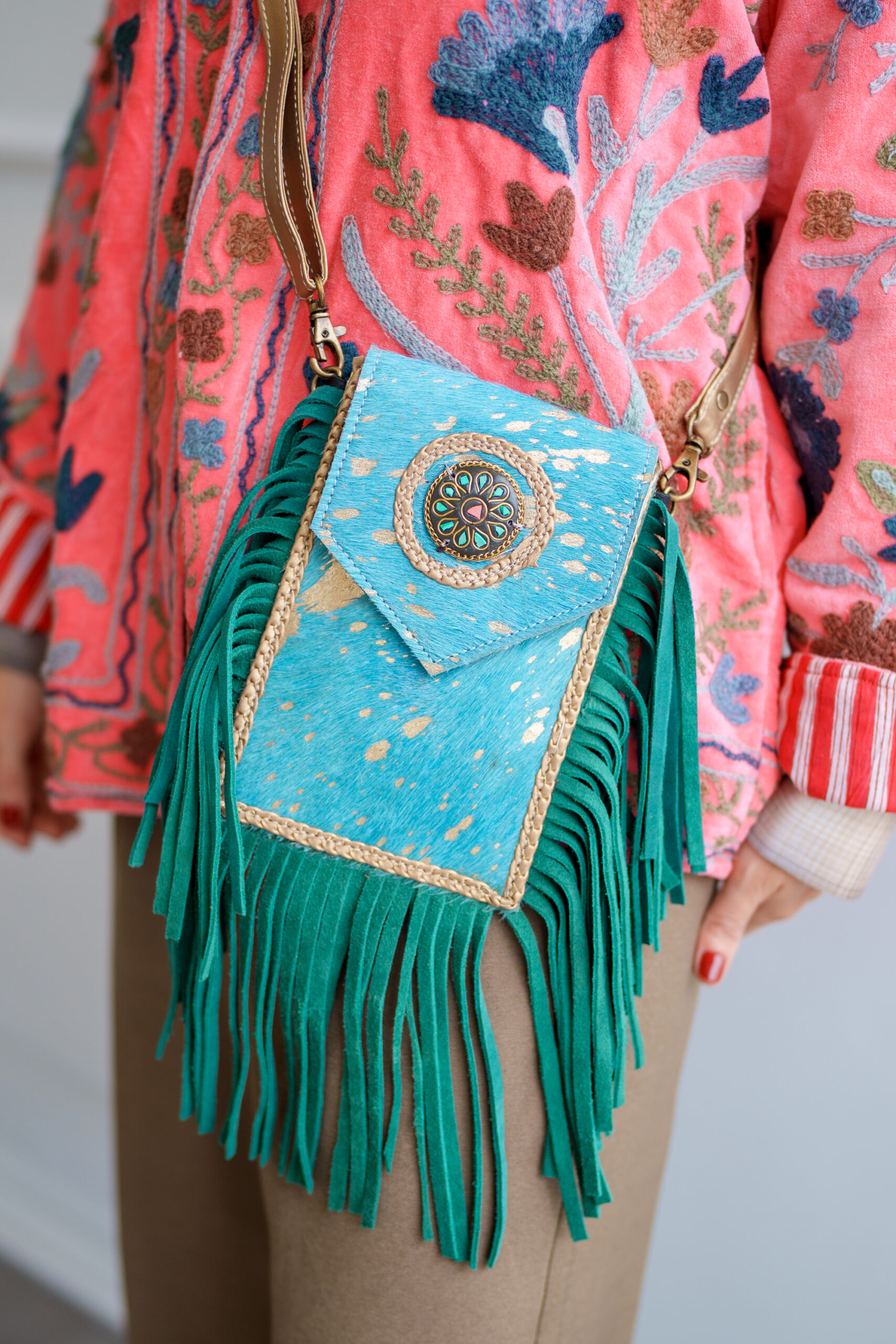 Cada bolso es una pieza artesanal, diseñado con 100% cuero de la mejor calidad para garantizar durabilidad y estilo, los detalles únicos como los flecos y estampados sin dudas hacen que cada bolso sea exclusivo y original, si buscas un accesorio que resalte, que sea funcional y lleno de personalidad es para ti
