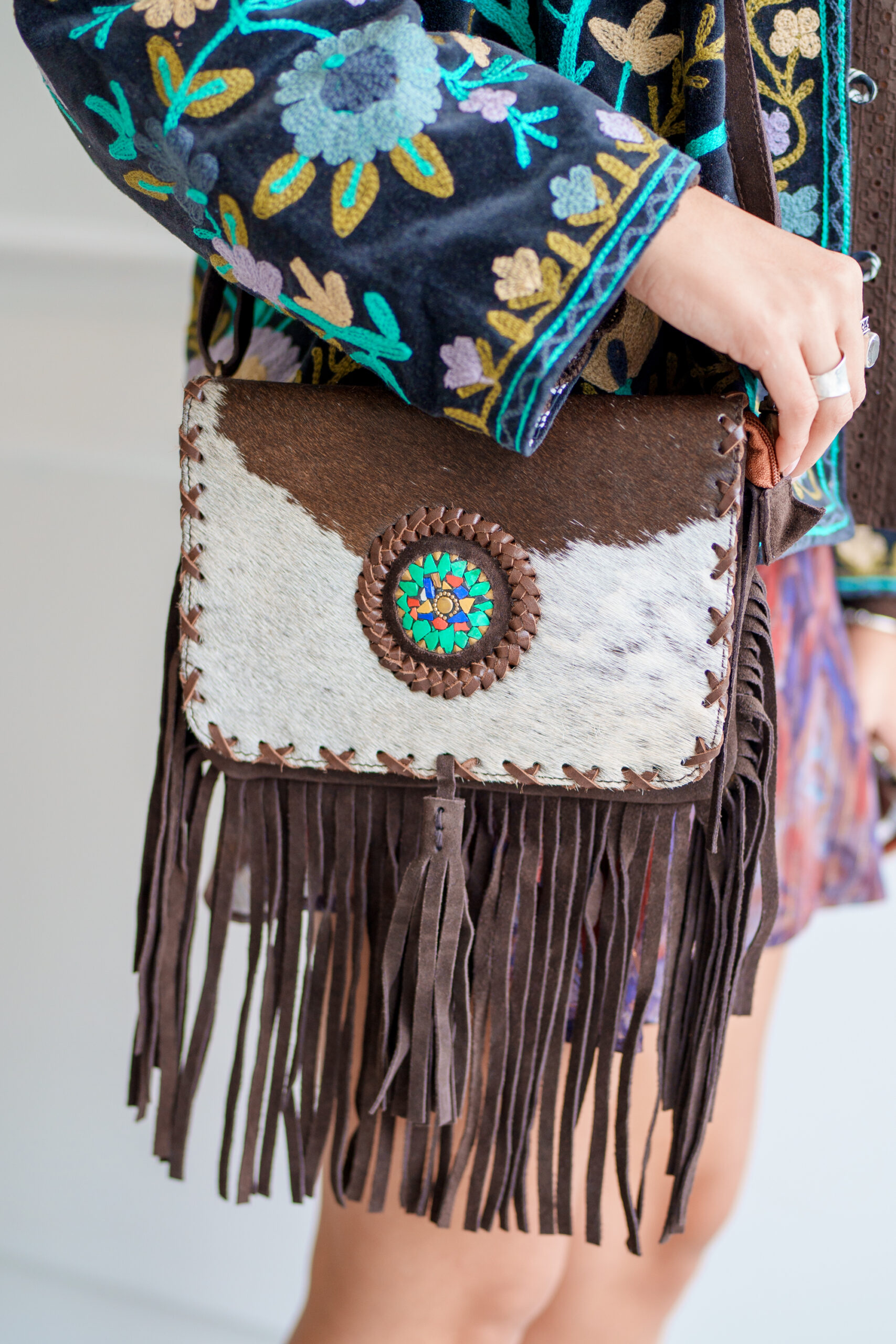 Cada bolso es una pieza artesanal, diseñado con 100% cuero de la mejor calidad para garantizar durabilidad y estilo, los detalles únicos como los flecos y estampados sin dudas hacen que cada bolso sea exclusivo y original, si buscas un accesorio que resalte, que sea funcional y lleno de personalidad es para ti
